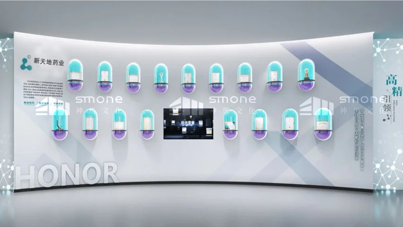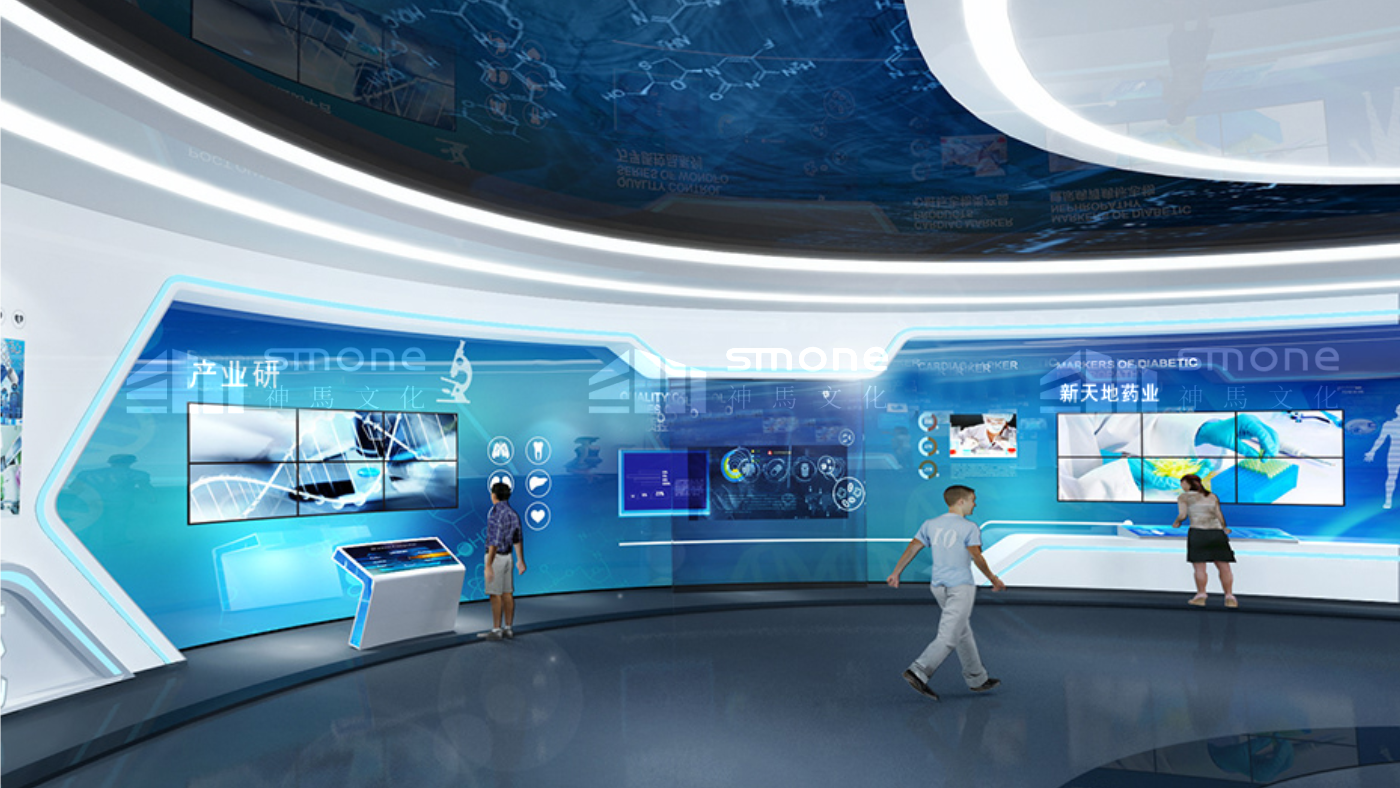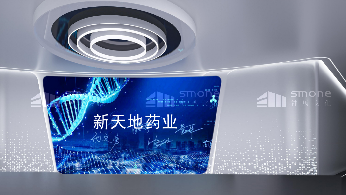 新天地药业股份有限公司品牌馆位于河南省许昌市长葛市,我们为其打造生物医药 “智慧互动体验型空间”,采用适配主题的现代智慧风格。展厅策划分为四大主题:一心一计图发展、独具匠心创产品、雄心蓬勃向未来、党建引领,实现一馆多用的功能、融合互补的内容、灵活组合的空间和智慧科技的体验,成为展示企业综合实力与生物医药创新成果的重要窗口。