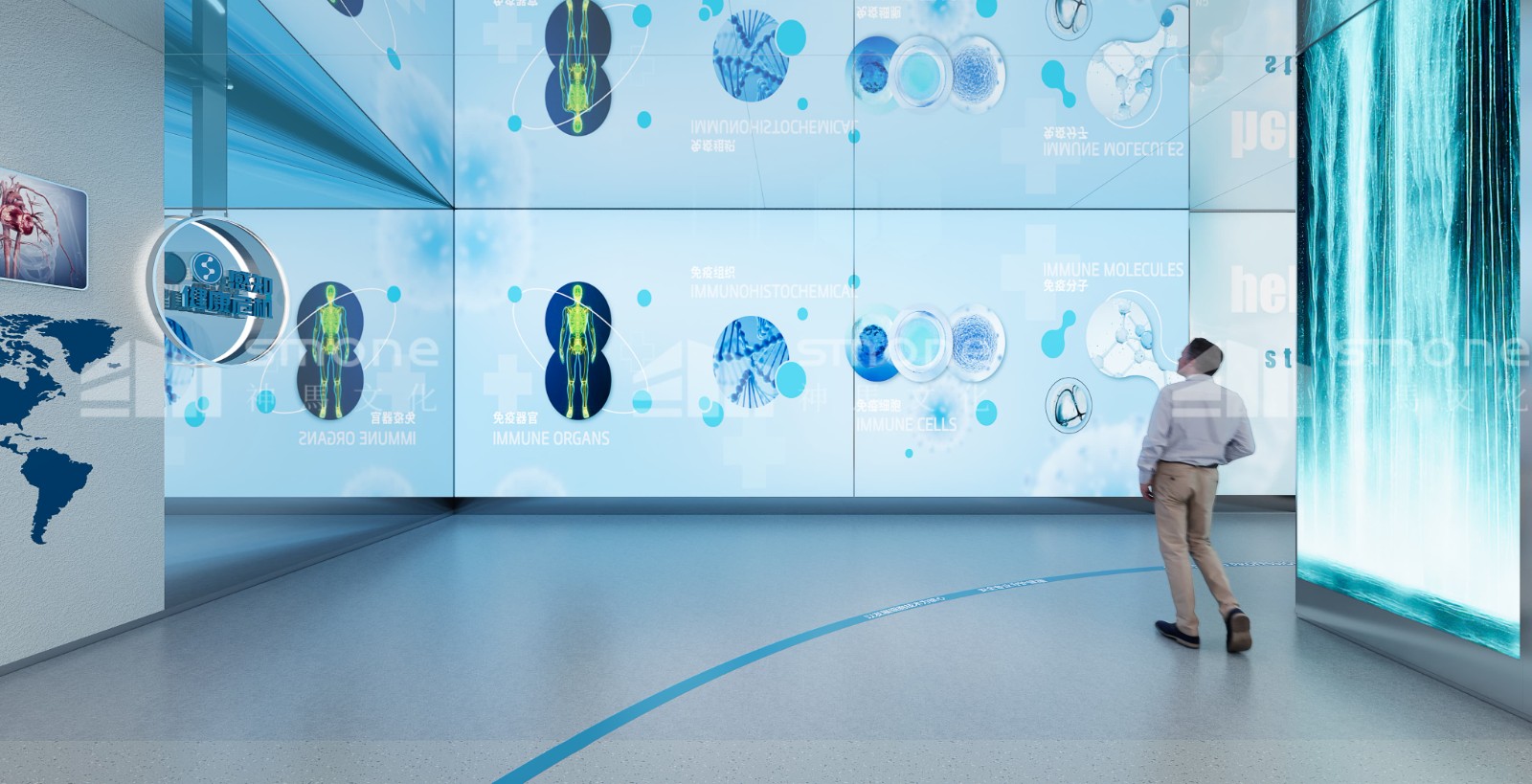 森普瑞斯细胞企业展厅位于北京市,总面积约500平,采用现代简约科技风格。展厅划分为四大板块:开启生命之旅、感知健康危机、探索细胞宇宙、创造健康蓝图,形成从健康认知到实践的完整链条,成为展示细胞科技前沿成果的重要窗口。