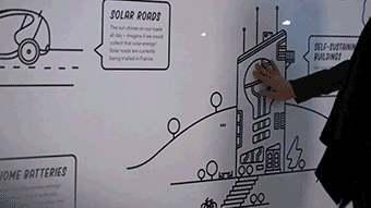 油墨导电互动墙就是一面糅合了绘画和影像的墙利用电容式感应、接近感应技术的新型多媒体互动墙,它通过近距离触控识别,触发影像系统在观众和展台之间产生交互和互动。